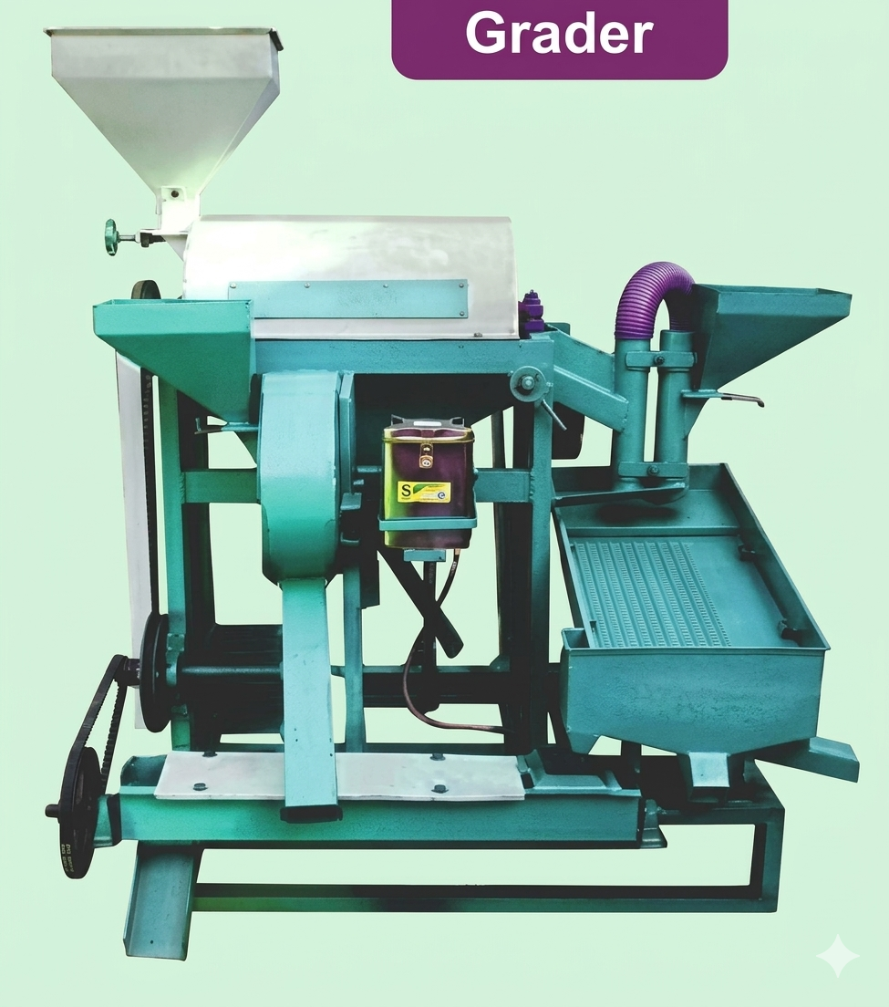 The Seed Grader is an efficient machine used for cleaning and grading seeds and grains based on their size and weight. It ensures uniformity and removes impurities such as dust, stones, and broken particles, improving overall product quality.